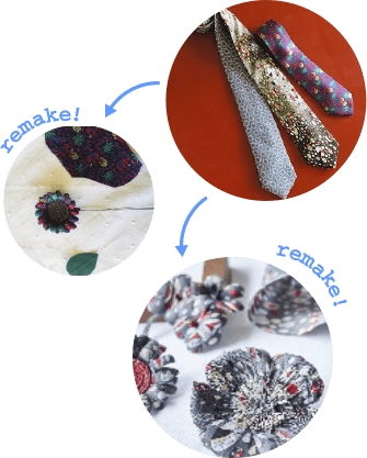 リメイク素材はスカーフ・ネクタイ・着物などからお作りします。